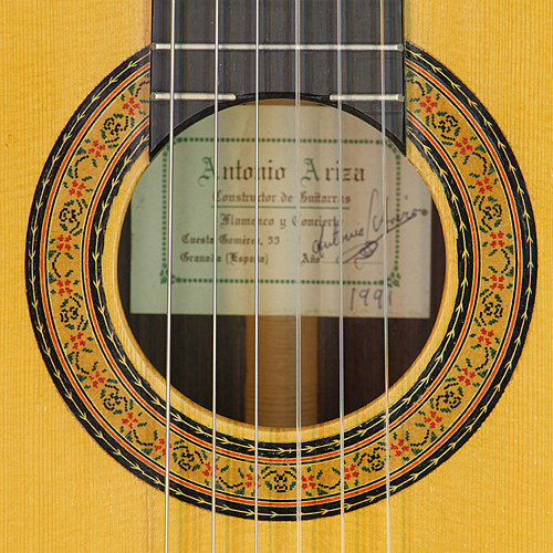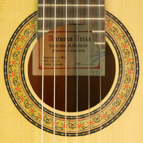 Flamenco guitar built by luthier Antonio Ariza with spruce top and cypress back and sides, year 1998, rosette, label