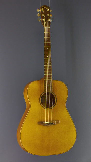 Satin finished acoustic guitar, model PT 59, built by German guitar maker Christian Stoll with solid spruce top and solid mahogany back and sides
