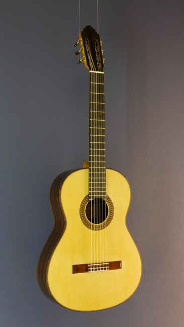 Classical guitar built by Spanish luthier José González Lopez in 2015 with spruce top and rosewood back and sides, rosette, label