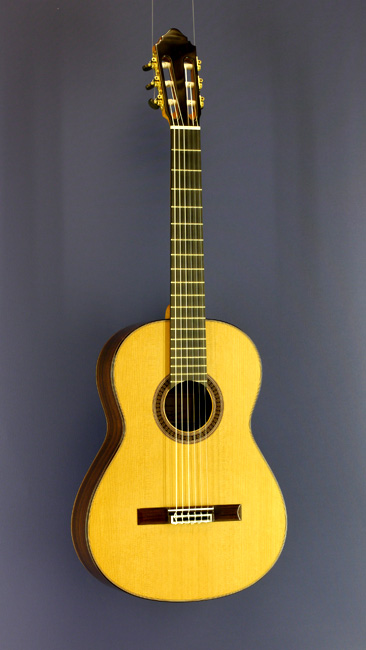 Classical guitar built by Spanish luthier José González Lopez in 2014 with cedar top and rosewood back and sides, rosette, label