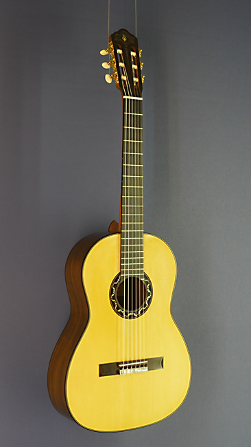 Classical guitar built by German guitar maker Matthias Hartig with spruce top and back and sides made of plum wood, scale 65 cm, year 2020, rosette, label