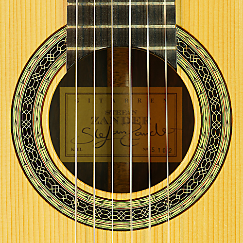 Classical guitar built by Stefan Zander with Doubletop spruce and Amazon rosewood back and sides, year 2015, rosette, label