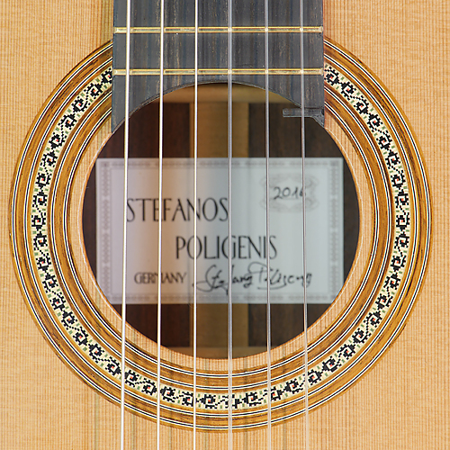 Stefanos Poligenis lernte beim Gitarrenbau-Meister Kolya Panhuyzen. Er baut seine Gitarren mit altbewährten Techniken (Deutsche Bauweise), fühlt sich dem traditionellen Gitarrenbau verpflichtet und ist stets offen für neue Erkenntnisse und Ideen. "Jede Gitarre ist ein Unikat."