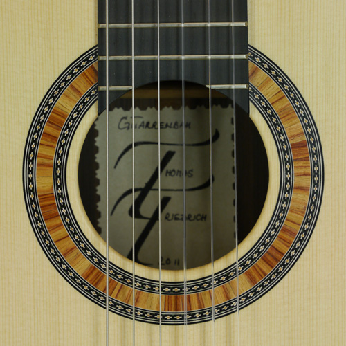 Thomas Friedrich klassische Gitarre Fichte, Ahorn, 2013, Rosette, Label