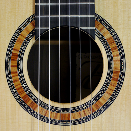 Klassische Gitarre gebaut von Gitarrenbauer Thomas Friedrich mit Fichtendecke und Palisander Zargen und Boden, Baujahr 2017, Rosette, Label