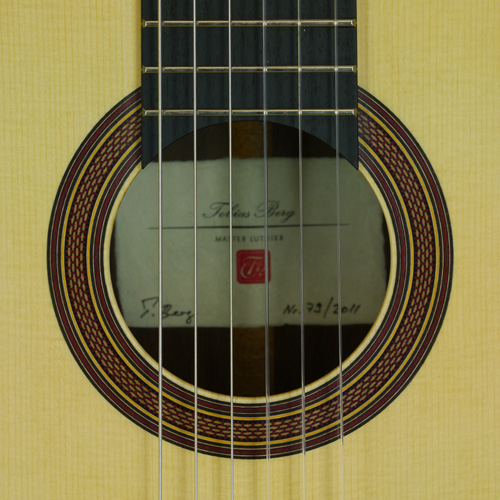 Tobias Berg Konzertgitarre mit Fichtendecke und Zargen und Boden aus Palisander, Mensur 65 cm, Baujahr 2013