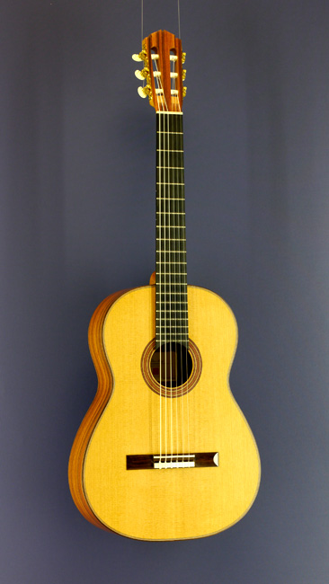 Konzertgitarre gebaut von Gitarrenbauer Tobias Berg mit Zederndecke und Zargen und Boden aus Pau Ferro, Mensur 65 cm, Baujahr 2018