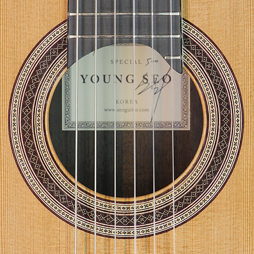 Classical guitar built by Korean guitar maker Young Seo with cedar top and rosewood back and sides, year 2018, rosette and label