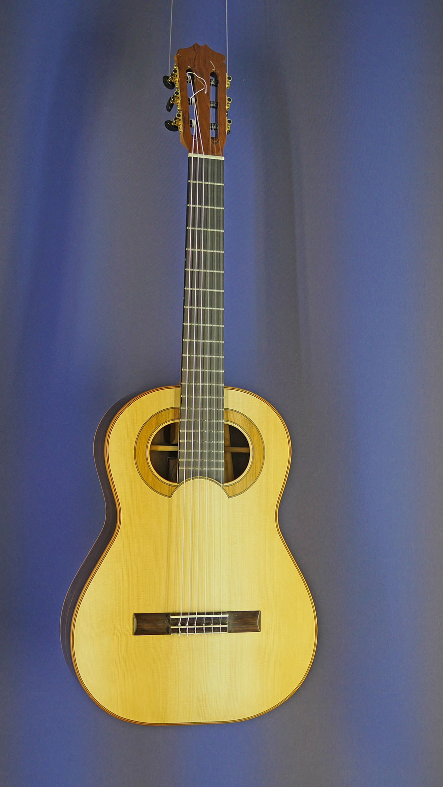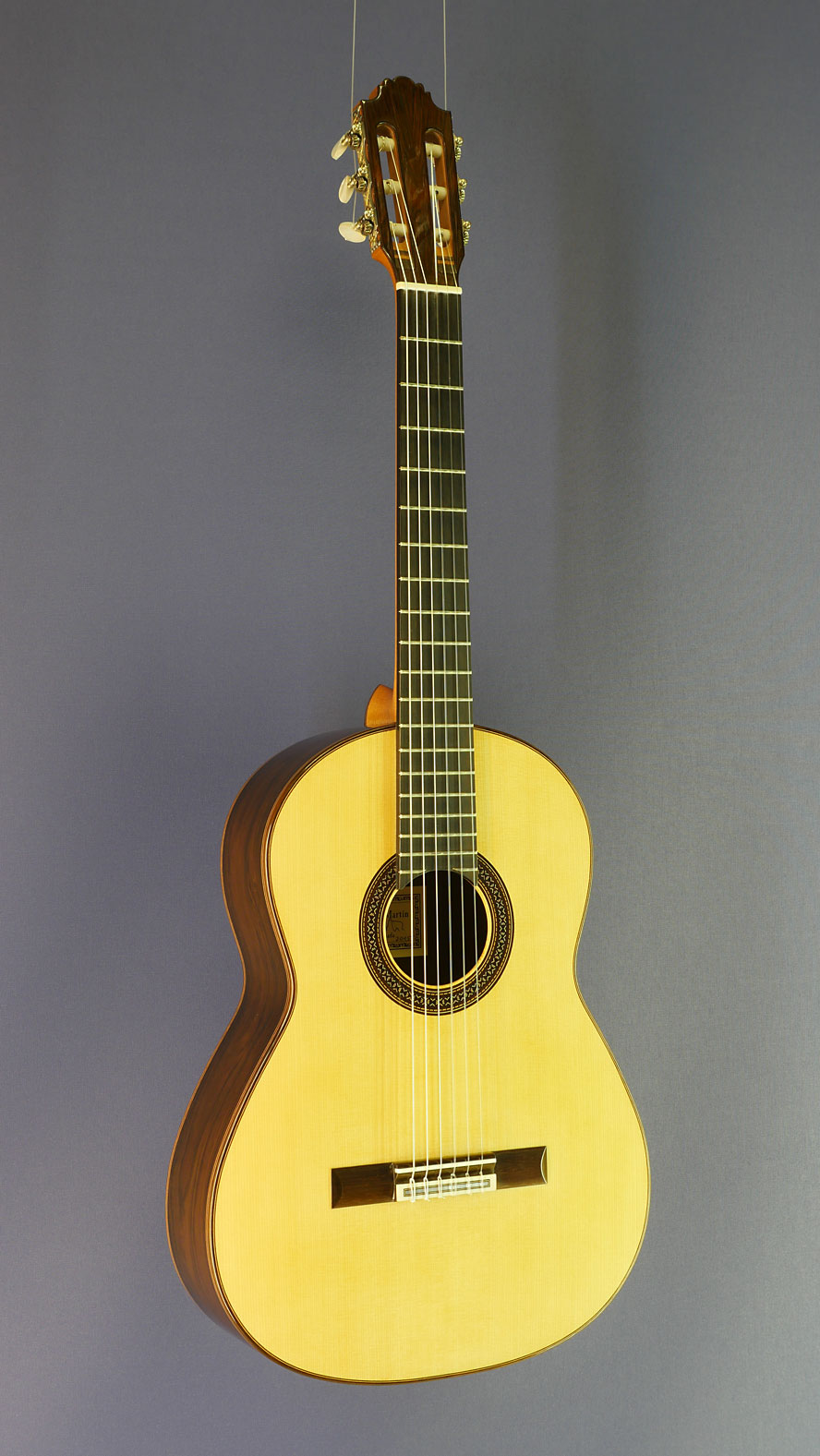 Hein Gitarrenbau, Reiner Hein, Konzertgitarre mit Fichtendecke und Zargen und Boden aus Palisander, Mensur 65 cm, Baujahr 2020