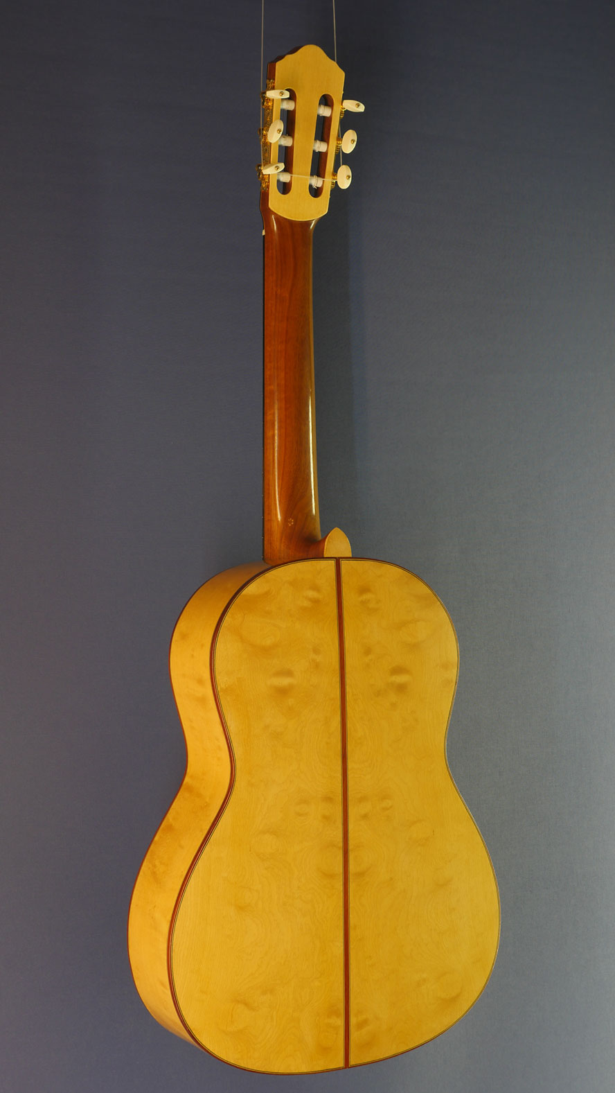 Bernd Martin Jubiläumsmodell 40 Aniversario, Nr. 2, limitierte Edition auf 8 Gitarren mit besonders ausgewählten Hölzern, mit Fichtendecke und Zargen und Boden aus Palisander, mit Scheller Mechanik und Titanium Bünden, Rückseite