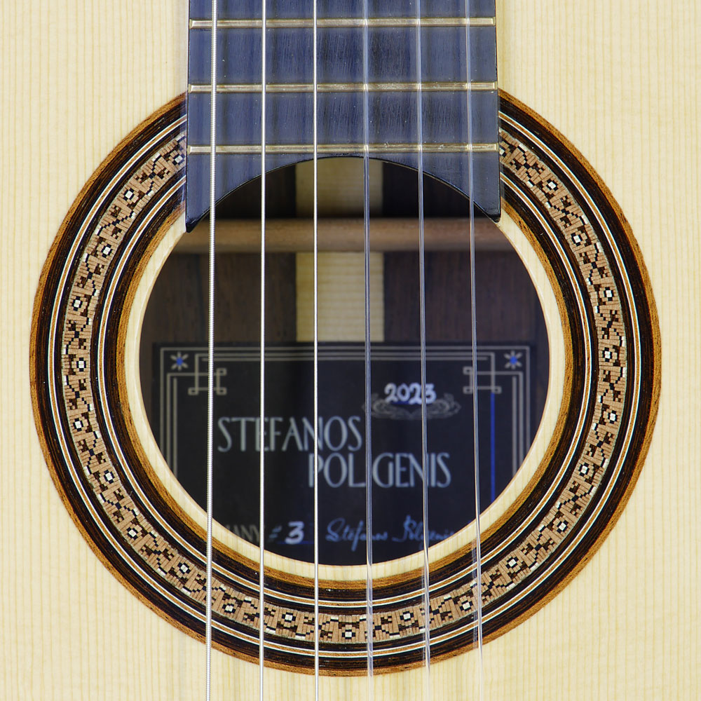 Stefanos Poligenis Konzertgitarre mit Fichtendecke (Double Top Lattice Bracing) und Zargen und Boden aus Madagaskar Palisander